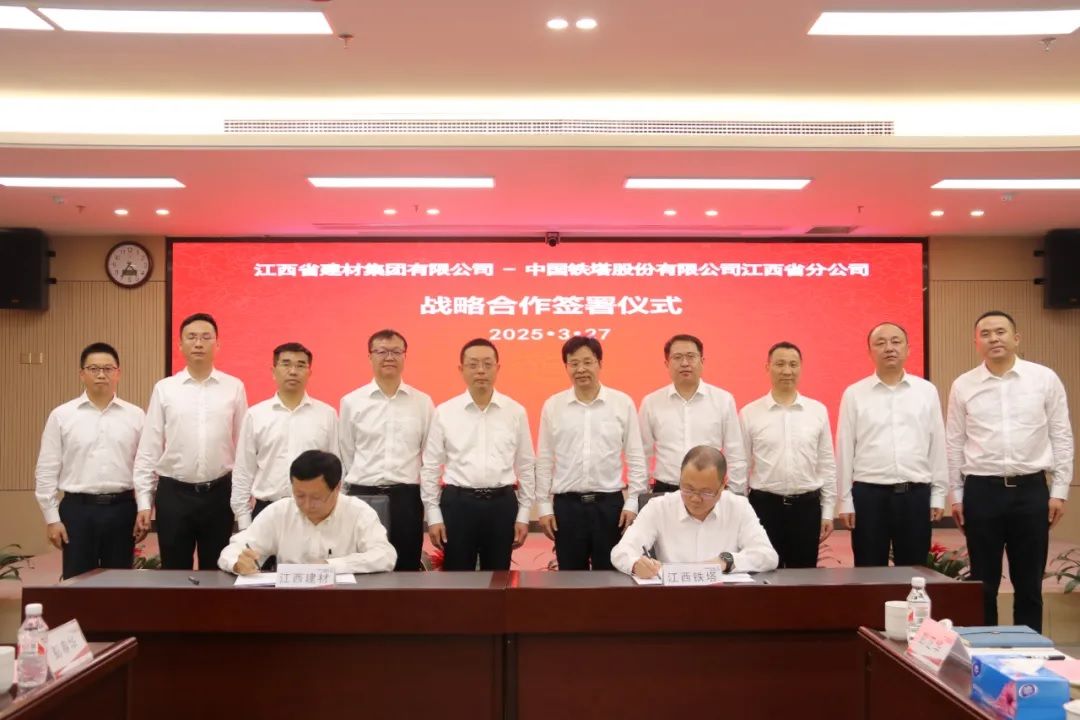 3月27日下午,江西省建材集团与中国铁塔江西省分公司在南昌举行战略合作协议签约仪式。建材集团党委书记、董事长、总经理陈文胜,中国铁塔江西省分公司党委书记、总经理高修林出席签约仪式。建材集团党委委员、副总经理、法务总监陈钊与中国铁塔江西省分公司副总经理詹迎分别代表双方签署协议。