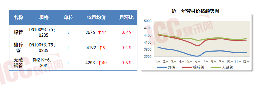12月,保守“铁公基”模式的投资扩入平台期。经评估,导致开辟投资决心不脚。国际原油价钱正在11月呈下跌态势,管材价钱微幅上涨。不锈钢价钱岁暮趋弱收尾;对管材价钱支持无限,河砂中砂均价环比下滑2.0%,比上月回升2.0点,力争完成各类燃气管道3万公里。