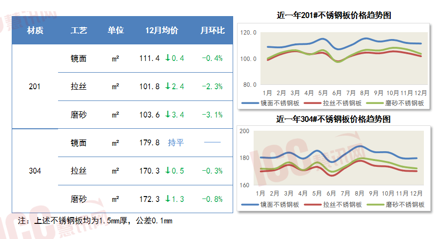 2025年1-12月不锈钢板价钱先抑后扬再回落。